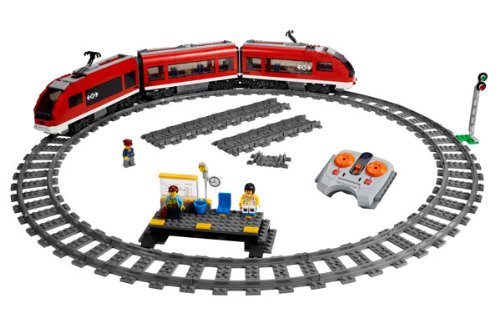 The Passenger Train is the fastest way for the people of Lego City to travel. Construct a circuit from 32 individual track pieces which include 16 flexible pieces which can be either curved or straight as required. Once built, the train can be controlled around the track using the 4 channel, 7 speed infrared remote control; up to 8 trains can be driven at once. The train features an engine and 2 passenger cars which have space for up to 10 minifigures to sit inside. The roof of the train can be removed to place the driver and 2 passenger minifigures inside. The train also features a station platform for Lego Minifigures to wait patiently.